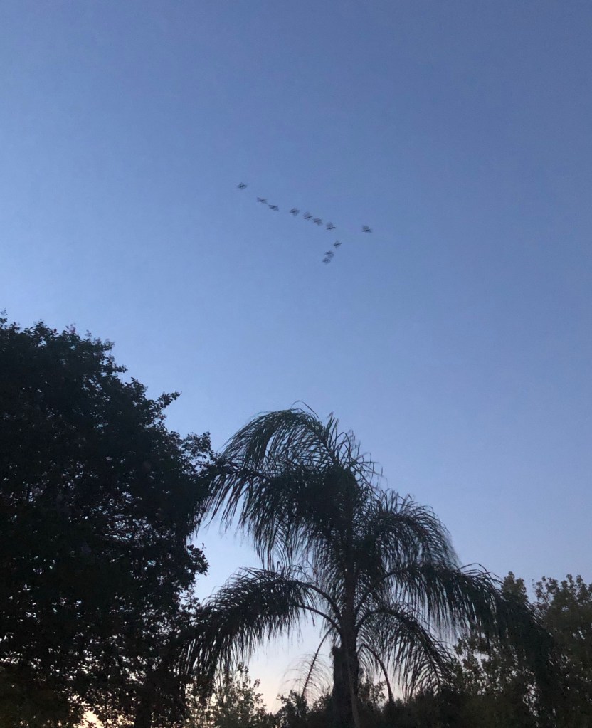 The birds are putting on a show as they migrate through our city. My eyes are caught upwards as they spiral down to land for a break at the wetlands across the street.